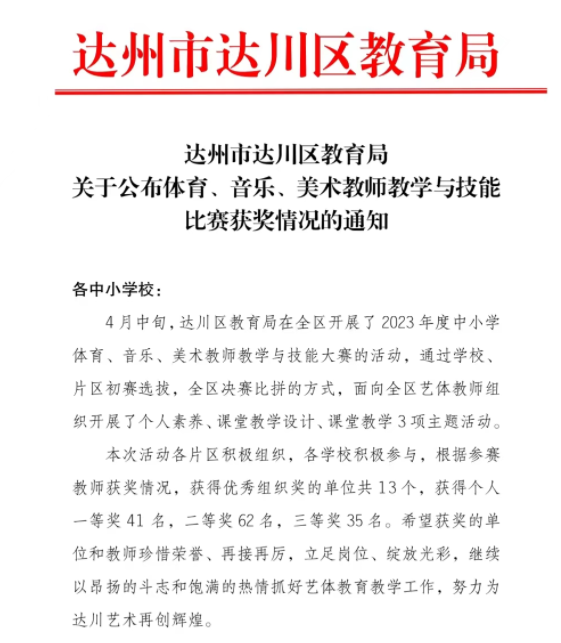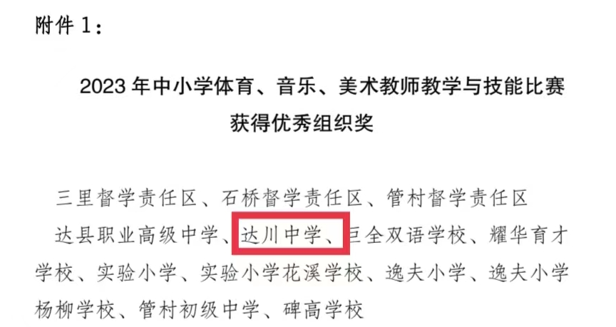 达川中学6名教师在区艺体教师教学与技能大赛中荣获佳绩