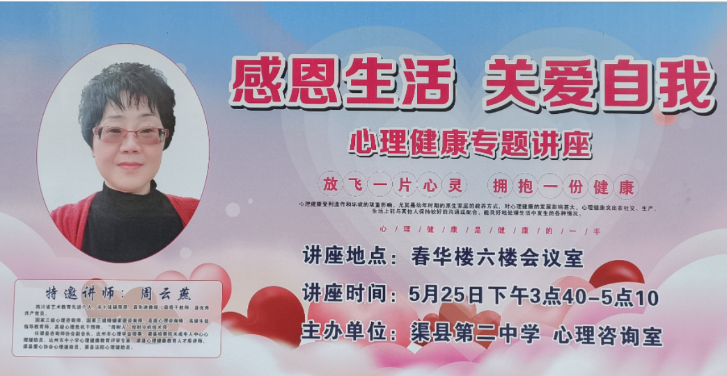 渠县第二中学举办“5.25,我爱我”心理健康教育讲座