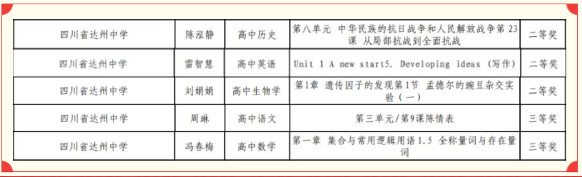 省教育厅获奖名单!四川省达州中学5名教师上榜!