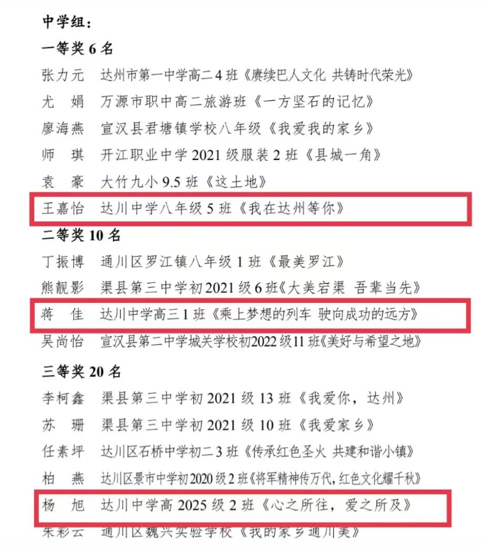 祝贺!四川省达川中学子在主题征文活动中再获佳绩