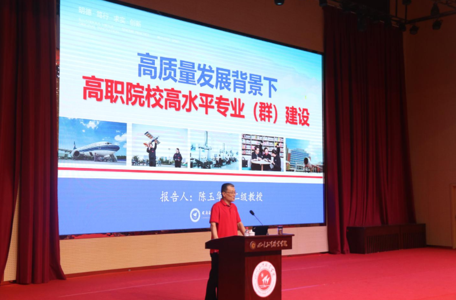 陈玉华教授从职业院校教学基本建设,职业教育的高质量发展,高职院校专业建设的内涵,高水平专业建设愿景,高职院校高水平专业群概念、模式及特征等五个方面,全面解读了高质量发展背景下如何开展高职院校高水平专业(群)建设的思路途径和方法。报告深入浅出,思路清晰,实践丰富,全校教职员工受益匪浅。