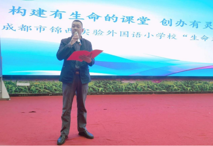 叶建国在致辞时代表渠县教育局对成都、万源的兄弟学校不辞辛劳前来渠县传经送宝表示衷心的感谢和热烈的欢迎!他指出,举办此次活动的目的旨在贯彻落实县委、县政府《促进教育高质量发展十条措施》精神,进一步落实新课程理念,深化课堂教学改革,促进教师专业成长,提高教育教学质量。这次活动既是一次课堂教学展示活动,也是渠县“名校+”集团化办学的一次教学研讨活动,更是成都、万源、渠县三地兄弟学校之间的一次教学联谊活动。他强调,学校之间要建立互助协作的共研关系,广泛开展听课评课、对话交流、学习借鉴、探索创新等工作,实现信息资源共同分享、专业技能共同成长、教学质量共同提升。他希望大家在认真倾听他人的观点和意见的同时,能够积极参与,踊跃交流,分享自己的经验和心得,特别是成都、万源的兄弟学校要畅所欲言,不吝赐教。通过我们的共同努力,达到“共研共享共成长 同心同向同提高”的目的。