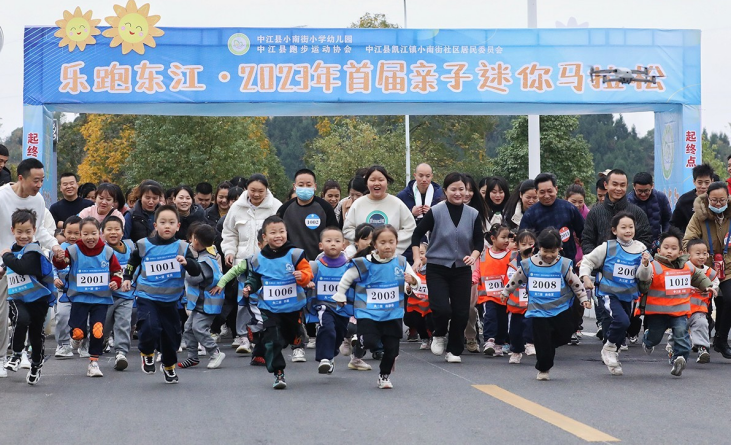 2023年12月1日,中江县小南街小学附属幼儿园在东江河畔举行“乐跑东江”首届亲子迷你马拉松活动,中江县跑步协会、小南街社区居民委员会协办此项活动。