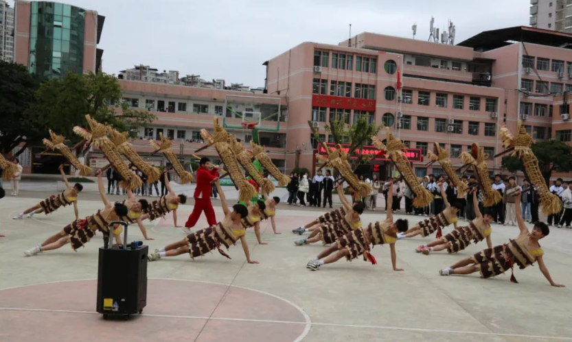 在达县职高本部校区,代表团参观了省级示范专业机电技术应用实训基地的工业机器人、电工电子、PLC等实训室,观看了学校“非遗”项目——板凳龙表演。