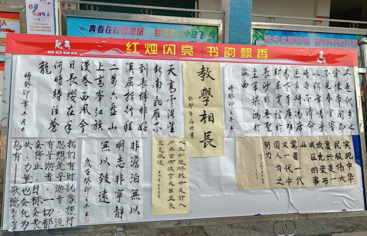 此次“红烛闪亮 书韵飘香”元旦师生书画展不仅为师生提供了一个展示才华的平台,也加强了校园文化建设,提升了师生们的艺术素养。活动筹备期间,学校团委、体艺卫号召各班级、各教研组积极参与,师生们共同策划、布置展览场地,确保了活动的顺利进行。