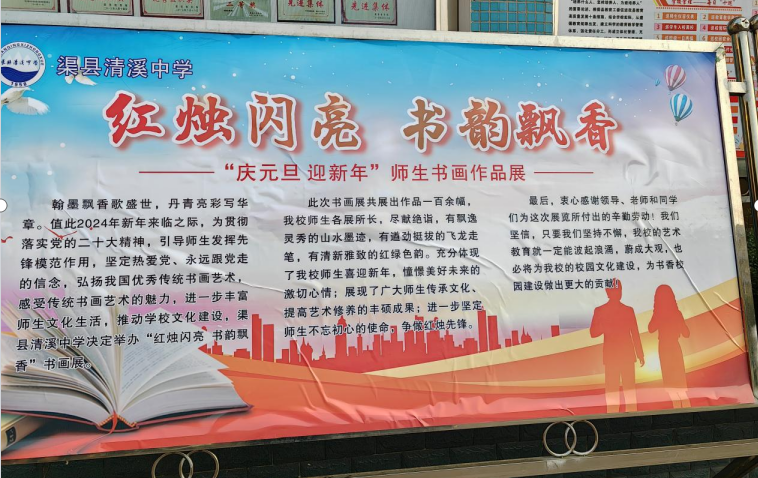 渠县清溪中学:成功举行“红烛闪亮 书韵飘香”元旦师生书画展
