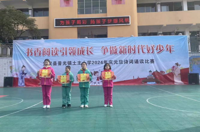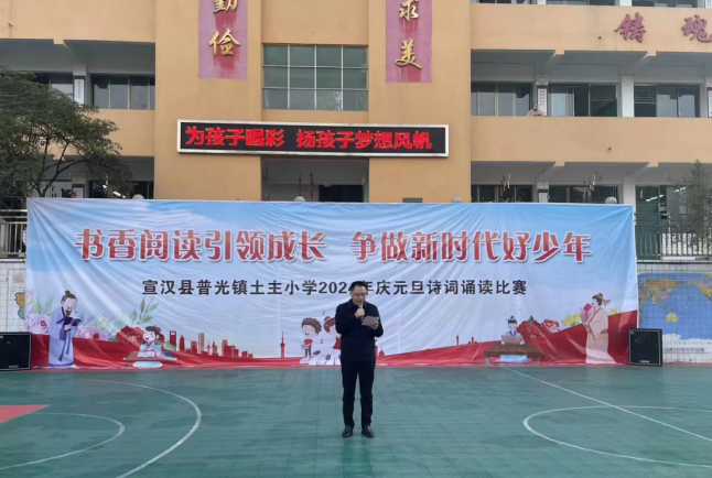 中国经典诗词是我国民族文化的精髓,也是中华文化艺术宝库中的一颗灿烂明珠。经典诗词作为民族智慧与民族精神的载体,是人类文明最宝贵的精神财富,使我们中华民族的魂与根。为了传承并弘扬中华优秀文化,提高师生的文学修养,培养学生良好的阅读习惯和阅读兴趣,让校园充满浓郁的书香味儿,1月3日,宣汉县普光镇土主小学举行庆元旦师生经典诗词诵读比赛活动。