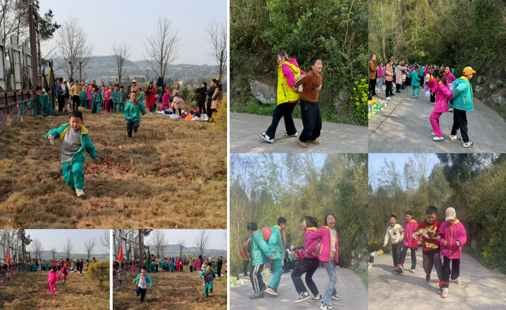 活动中,师生们先按班、按组在划定的区域里,放下背包,摆放好组内物品。同学们活动丰富多彩:幼儿组的亲子游戏《幸福场地》场面热闹,家长和孩子一起唱跳,孩子玩得开心,也拉近了家长与孩子的距离。一二年级组往返接力跑,在孩子们的阵阵加油声中走进高潮,最后还集体唱了歌曲《春晓》抒发孩子们对春天的热爱;三四年级组进行了集体大合唱、个人表演唱等;五六年级组先是三个班《接力运气球》,同学们个个精神饱满,在同学与同学的协调配合下,每组同学是那样为班级争荣誉。接着玩了《两人三足》游戏,再进行了才艺大比拼,跳《科目三》,独唱、合唱展示。最后各班同学和老师们合影,脸上都露出开心的微笑。