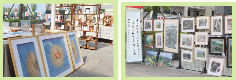 本次书画展共征集全校师生600余幅书法、油画、水粉、国画、剪纸、雕塑、叶脉画、篆刻、速写、素描等作品,经过遴选,最终选出200余件作品进行布展。艺术组老师认真规划场地,精心策划和设计,用心布置每一件作品,力求把精美的书画作品以完美的方式呈现给观众。展出当天,三里校区书画展览区吸引了众多观众前来围观,大家不时驻足凝神观看,不时指点评谈,不时啧啧称赞。遇到一些不明白的作品,有时还会向在场服务的美术老师询问,老师们也一一认真地进行解说。一轮又一轮观众走过,布展的老师也为自己用心的工作得到认可而倍感欣慰。