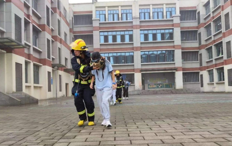 5月9日9时许,泸县二中城西学校小学部校区教学楼楼道浓烟滚滚,消防警报响起。各班老师火速组织学生,用湿毛巾捂住口鼻,身子下沉,有序地穿过浓烟,“冲”出教学楼,直奔学校田径场……