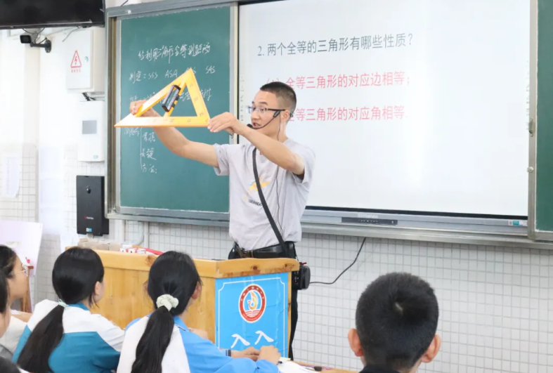 达川中学周秋月老师给初一年级的同学们带来了一堂生动有趣的英语课,内容虽精简,却由浅入深,层层引领学生渐入佳境;王超老师则讲授了数学新课第四章第5节,他利用三角形全等测距离的知识,从学生熟悉的生活入手,启发学生掌握并拓展知识解决问题。课堂上,同学们积极互动,气氛十分活跃,教学效果良好,受到听课师生的一致好评。