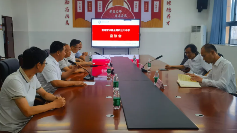 座谈会由邓智峰主持。代旭东首先对达川中学百年办学历史、学校师生情况、校园文化建设、办学思想和办学特色等基本情况作了介绍。他重点介绍了学校与智华基金签订《捐资助学协议书》后,在区委、区政府领导的关心下,在相关职能部门的支持下,达川中学各协议项目全面推进,相关项目已完成选址、资金概算、平面设计、立项审批,正报送区财政局评审,随后招标实施。他再次感谢智华基金对达川中学给予的帮助,表示学校将按进度建好图书室、电子阅览室、创客中心,对教学楼、宿舍楼进行升级改造,为学生提供更加舒适、便捷的学习环境,积极打造素质教育的第二课堂,将“一切为师生服务”的宗旨贯穿到各项基础建设之中。同时,学校也会把智华基金的义举和美德传递给学生,让他们学会感恩,成就自我,回报社会。