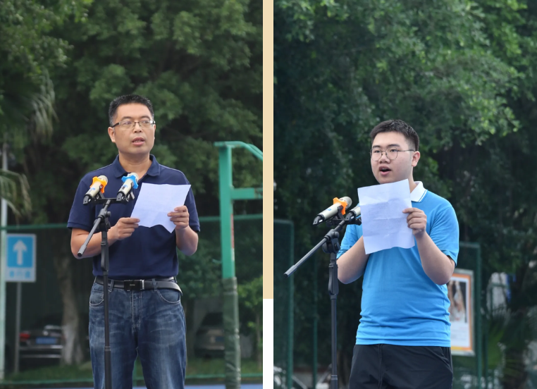 (教师代表朱方旭、学生代表彭嘉悦发言)