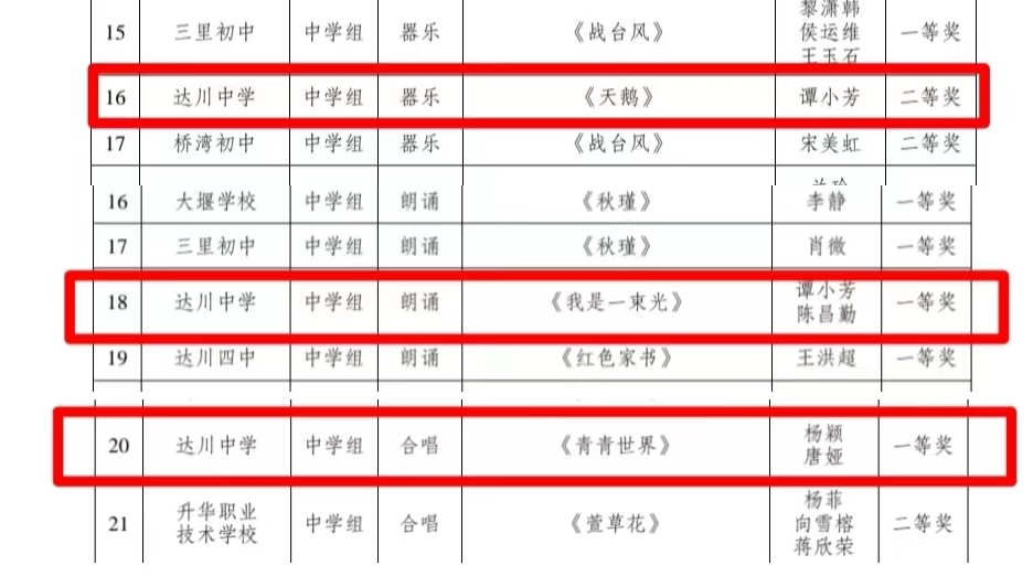 四川省达川中学喜获9个一等奖