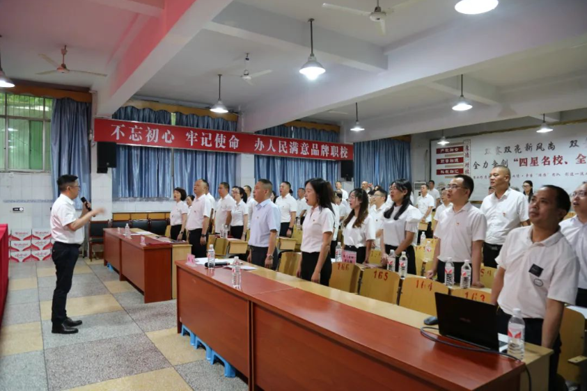 7月1日,雨过天晴,万物生辉。四川省达县职业高级中学100余名党员身着正装、佩戴党徽,会聚一堂,参加了庆祝中国共产党成立103周年大会,庆祝大会由学校党委专职副书记廖飞主持。