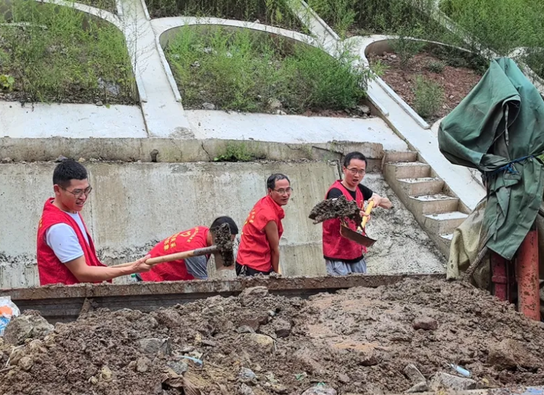 到达清淤现场后,面对一片狼藉的街道,志愿者们快速行动,有序分工,手持铁锹、洋铲、扫把等工具,全力以赴投入到清淤工作之中。一件件红色志愿服穿在身上更在心上,尽管泥浆沾满衣裤,泥水溅满脸庞,汗水浸湿衣裳,老师们仍热情高涨地投入忙而有序的清淤工作,充分发挥了不怕脏、不怕苦、不怕累的奉献精神。经过3个多小时的奋战,覆盖在道路上的淤泥被清理干净,道路逐渐恢复了原来干净、整洁、畅通的模样。