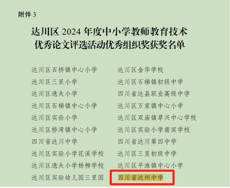 【喜讯】达州中学荣获多个奖项!达川区中小学教师教育技术优秀论文评选名单公布