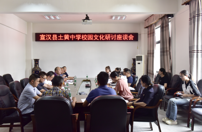 8 月 10 日下午,在宣汉县土黄中学会议室成功举办了一场校园文化研讨座谈会。本次座谈会旨在深入探讨如何进一步丰富和提升校园文化内涵,营造更加积极向上、富有特色的校园文化氛围以及对前期视觉识别系统方案进行再次商讨。本次特邀北京大学文化产业院院长向勇教授一行做指导性建议。