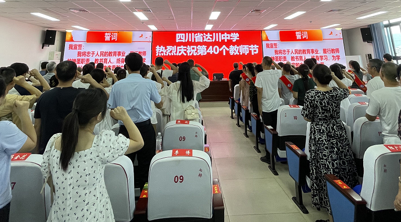 9月8日,四川省达川中学在三里校区隆重举行庆祝第40个教师节暨荣休仪式。学校领导及全体教职工隆重集会,共同庆祝自己的节日,并热烈欢送今年退休的老同志。党委委员、副校长孙仁成主持会议。