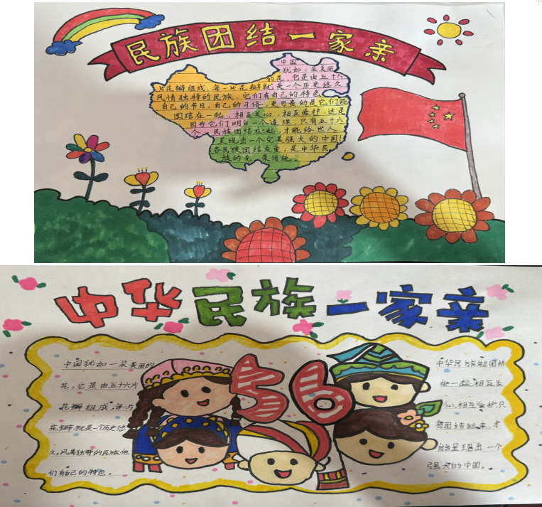 同时,孩子们在活动中还挥动自己手中的画笔,绘制了一幅幅美丽的手抄报,展示出自己对各民族的热爱和共筑中国梦的美好愿望。
