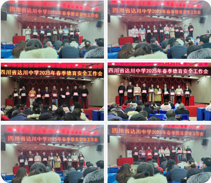 3月5日下午,四川省达川中学2025年春季德育安全工作会议在华蜀校区学术报告厅举行,会议由分管德育安全工作的副校长周炀主持。 安全办公室主任李良军总结了2024年秋季安全工作:一是高度重视,措施有力;二是制度保障,举措到位;三是畅通信息渠道,规避风险;四是加强管理,与消防、公安、社区合作形成合力;五是加强隐患排查,及时整改;六是开展安全教育系列周活动;七是系统性开展交通安全、防溺水安全、防电信诈骗安全、防校园欺凌、防性侵等安全教育。他对本期安全工作重点作了说明。一是严格落实安全平台教育任务,二是校园值班要细化落实,三是落实门禁管理,四是加强隐患排查,五是密切家校联系,六是多渠道多形式开展安全教育。他还公布了2025年春季各月安全教育主题。 随后,学生处副主任贺全福总结上期德育工作并布置本期德育工作。他指出,当前德育工作存在教育前置力度不够,教育深度不够的问题。2025年春季德育工作要点:一是落实每月主题教育,深化德育内涵;二是规范学生行为,强化日常管理,卫生习惯 、手机管理、早恋与欺凌、发饰仪表等;三是关注学生心理,筑牢健康防线;四是营造班级文化,打造育人环境,美化教室,开展"书香班级"创建、绿化教室等;五是加强家校协同,凝聚共育合力;六是落实值日管理,细化责任分工;七是加强师德修养,树立师表示范;八是提高活动质量,注重育人实效。他指出,只要我们把学生当成自己的孩子对待,把学校看成自己的家,相信学校一定会发展得更好。 会上,对2024年下期德育安全工作的作出优异成绩的老师进行了表扬。学校党委专职副书记张莉萍,党委委员、副校长孙仁成、邓智峰、周炀、王莉分别宣读了四川省达川中学2024年秋安全管理先进个人、德育工作先进个人、优秀心理辅导员、优秀班主任、家访先进个人的表扬决定,并为获奖老师颁发了奖状。 会上,学校党委副书记、校长代旭东就德育安全工作提出要求。他指出,安全工作要坚守三个零目标,零安全责任事故、零信访事件、零师生犯罪。同时,他强调了学校安全工作的几个重点:防溺水重宣传重落实、防交通事故常讲常抓、防暴恐不疏漏、防校园欺凌高度重视、防校园踩踏事故不放松、消防安全严格落实、食品安全抓紧抓好、心理健康安全要绷紧。他还就学校值日工作进行了专门强调和布置,就学生常规管理和违纪学生处理作了安排。 最后,学校党委书记代光兵作总结讲话。他指出,要狠抓班级管理,各班主任要高度重视班主任工作的重要性,要加强班级日常德育工作,打造优秀班级和品牌班级;要加强班级管理的精细化,要细化量化班级管理。对学生心理健康教育工作,他指出,要关心关爱并严密关注心理问题学生,严格落实多帮一的制度。他强调,安全工作绝不松懈、绝不疏漏、绝不侥幸,一定要严格隐患排查、严格落实值日值班、严格督查检查、严格落实反馈机制。全校上下要团结一心,树牢意识,确保校园平安,为学校高质量发展保驾护航。