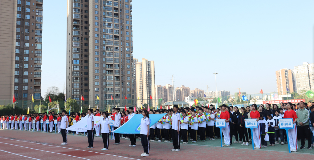上午8时,伴随着激昂的《运动员进行曲》,入场式正式拉开帷幕。国旗方队、校旗会旗方队、彩旗方队、花环方队率先入场,同学们精神抖擞,步履铿锵,象征着全区青少年蓬勃向上的精神风貌。随后,裁判员方队、运动员方队、志愿者方队依次出场。队员们身着统一服装,高喊嘹亮口号,展示着青春与运动的活力。入场式解说员热情洋溢,将各校的办学特色与校园风采娓娓道来,现场报以阵阵掌声。