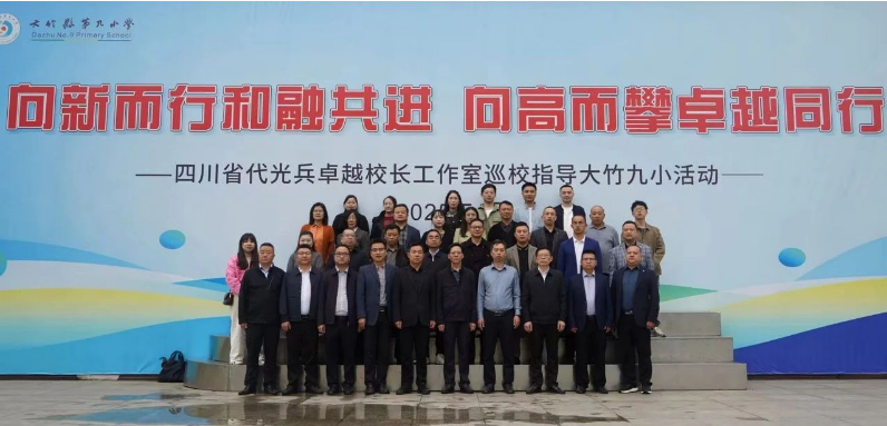 4月11日,四川省代光兵卓越校长工作室第三次集中研修巡校指导活动在大竹县第九小学举行。活动以“向新而行和融共进 向高而攀卓越同行”为主题,大竹县教育局党组成员、副局长袁冬冰,达州市诗歌协会主席、巴山文学院院长龚兢业,大竹县教研室书记、主任杨平,工作室成员,竹乡名校领航计划(大竹九小)联合教研组成员,以及相关学校中层干部100余人参加活动。