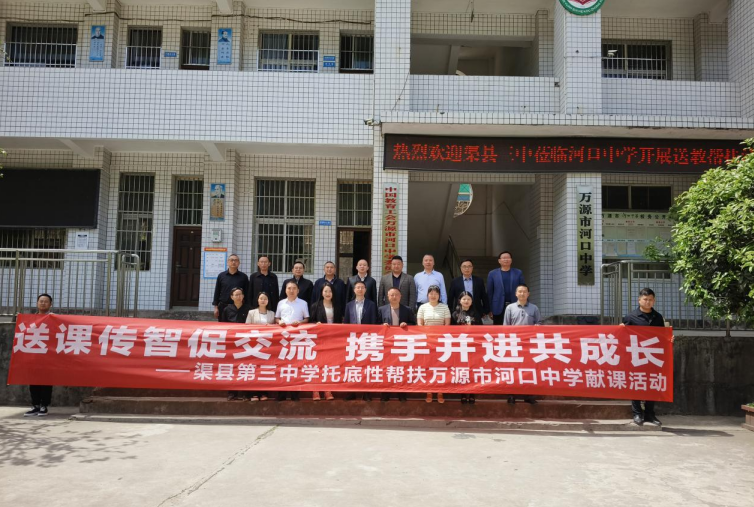 为积极响应达州市教育系统托底性帮扶工作号召,进一步促进优质教育资源共享,提升教育教学水平和质量,4月15日-16日,渠县第三中学党委副书记、校长熊富强率渠县三中教师12人,第四次奔赴万源河口中学,开展托底帮扶送教活动,为河口中学师生带来了精彩的课堂,为推动教研教改、深化合作交流、促进均衡发展,创造了更加有利的条件。