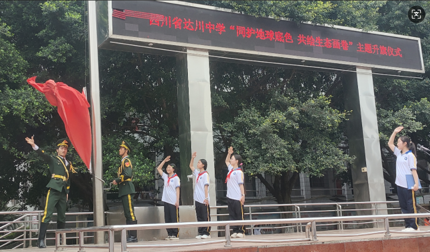 四川省达川中学举行“同护地球底色,共绘生态画卷”主题升旗仪式