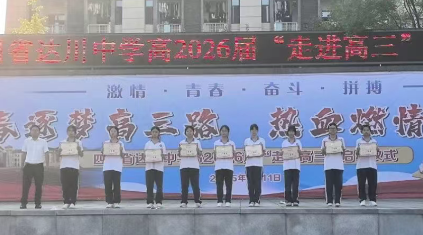 此次“走进高三”誓师大会,不仅是一场仪式,更是一次精神的洗礼和力量的凝聚。它标志着高2023级的同学们正式踏上高三征程,以百倍的信心和昂扬的姿态,向人生的关键一搏发起冲锋。旌旗猎猎,战鼓已擂,达川中学新高三师生,必将以今日之誓言,铸就明日之辉煌!