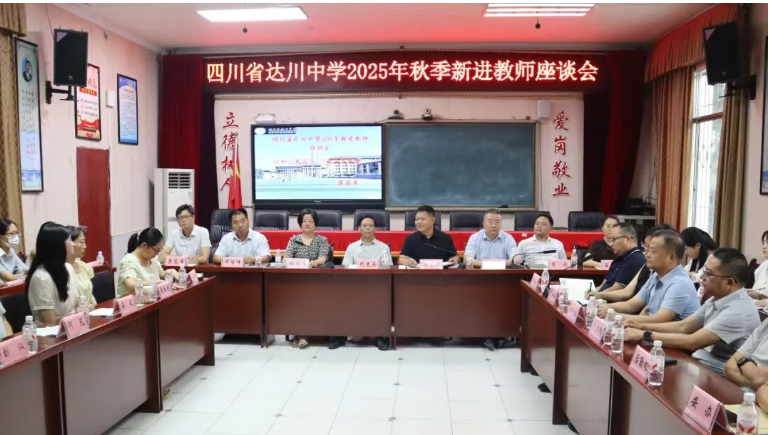 为帮助新进教师更快融入学校环境,明确教育教学使命,增强归属感和责任感,8月30日下午,达川中学在华蜀校区视频会议室举行2025年新进教师座谈会。校级领导、各处室负责人与新进教师齐聚一堂,共话教育初心,同绘育人蓝图。
