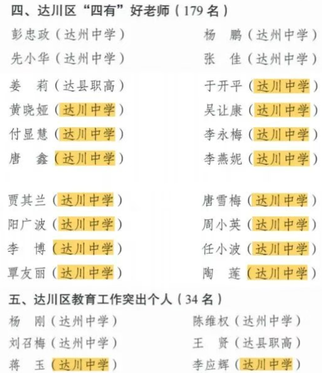 热烈祝贺达川中学22名教师喜获市、区级表扬