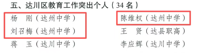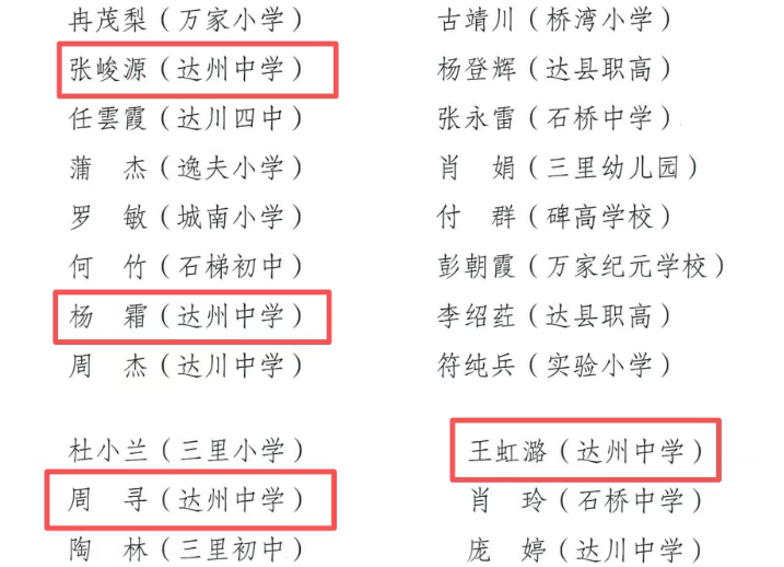 四川省达州中学荣获多项区级集体及个人荣誉