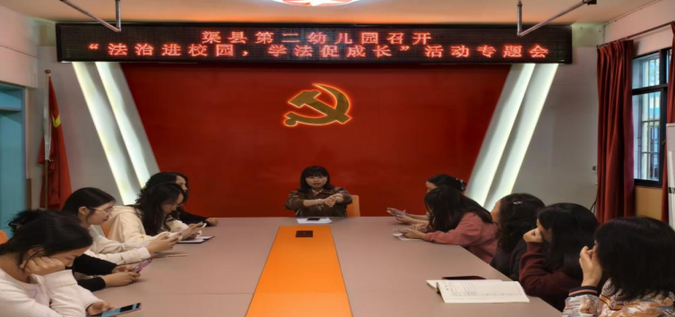 活动启动前,我园分管法治工作的刘琴副园长召开“法治进校园,学法促成长”主题活动专题会,全体教职工参会。会上明确活动目标、流程及各岗位职责:园务办负责幼儿法治教育活动设计,安办牵头协调法治副校长资源、落实场地及安全保障,各班主任承担班级主题活动组织任务。通过分层部署,确保活动从策划到实施层层衔接,为后续系列活动的有序开展奠定了坚实的组织基础。