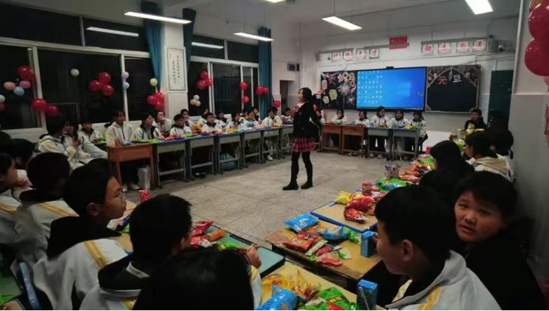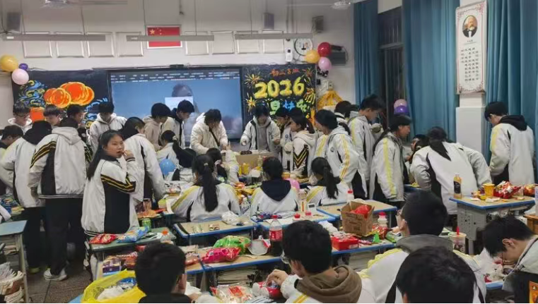 12月30日晚,四川省达川中学校园内彩灯闪烁,欢声笑语不绝于耳,全校各班同步开展了以“辞旧迎新,飞扬青春”为主题的元旦晚会,学生自主策划、全员参与,共同营造了一个充满喜庆与温暖的迎新之夜。 喜气洋洋迎新年 当晚,各班似乎都变成了小小的“创意坊”。学生们亲手装点教室,门窗上贴满了寓意吉祥的剪纸和新年寄语,黑板上绘有五彩斑斓的元旦主题板报。气球、彩带、串灯和闪烁的荧光棒交相辉映,平日里严肃的学习空间变成了温馨而欢快的喜庆现场。 不仅仅是场景的布置装扮,各班在美食准备上也下足了功夫。课桌上摆满了糖果、糕点、瓜子和花生等零食,饮料琳琅满目。更有班级别出心裁,准备了烧烤、干锅等特色美食,香气四溢,增添了浓厚的节日气氛与生活气息。 晚会节目更是丰富多彩,各班活动设计各具特色,既有深情动人的歌曲演唱、活力四射的现代舞蹈,还有趣味表演、乐器演奏等。初三.16班制作的创意蛋糕嵌上了全班学生的名字和祝福语;初三.17班用课桌拼成餐桌,让同学们在聚餐、交流中度过一个有意义的晚宴式晚会;初二.11的趣味模仿秀,孩子们像模像样的模仿逗得大家笑声不断……多姿多彩的活动促进了师生互动,拉近了彼此距离,轻松愉悦的笑声溢出教室,在走廊、校园回荡、交汇。 有的班级还设置了“感恩与展望”环节,同学们分享过去一年的成长感悟,并写下对新一年的美好愿望。老师们也融入其中,或献歌一曲,或参与游戏,与学生们共同庆祝,现场气氛融洽而热烈。 “这次晚会从策划、布置到表演,基本上都由学生自己完成,大家感觉特别有成就感。不仅玩得开心,班级也更团结了。”走进一个教室,高一.16班一位学生兴奋地说道。班主任覃老师也表示,“这是一堂生动的实践课,孩子们在筹备中锻炼了策划、组织、协调能力,在展示中增强了自信,在欢乐中释放了学业压力,以饱满的精神状态迎接新的一年。” 近年来,达川中学十分重视学生的全面发展,鼓励学生自主组织各类活动。此次全校元旦晚会,旨在营造积极向上的校园文化氛围,让学生在感受传统文化魅力的同时,提升综合素养,增强集体归属感。 新年的钟声即将敲响,达川中学的师生在这个自编自导自演、自娱自乐的温馨夜晚,以青春的热情与欢笑,告别充实的一年,共同迎接充满希望的2026年。