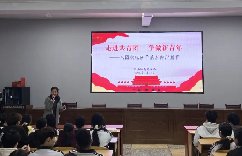 为加强入团积极分子思想教育,表彰优秀学生,传递青春正能量,3月23日下午,四川省达县职业高级中学三里坪校区在大多媒体教室举行了2026年春季入团积极分子思想教育暨主题征文颁奖仪式;此活动在职教园校区党员活动室同时举行,由现代服务专业部副主任杨来恩、教师任格主持。各团总支书记、全体团员及入团积极分子参加了本次活动。 仪式在庄严的国歌声中拉开帷幕,全体师生肃立,齐唱国歌,爱国情怀在会场中激荡。随后,全体团员高举右拳,重温入团誓词,铿锵有力的誓言彰显着团员们坚定的理想信念与责任担当。 在颁奖环节,主持人宣读了征文比赛获奖名单,本次活动共征集作品30余篇,经严格评审,6篇优秀作品脱颖而出。与会老师依次为获奖同学及优秀指导教师颁奖,掌声阵阵,既是对获奖者的祝贺,也激励着全体学子以榜样为力量,书写青春华章。 颁奖仪式后,团委负责人高晓芳为入团积极分子讲了专题思想教育课,深入浅出地讲解了如何成为一名合格且优秀的共青团员。团课围绕团的基本知识、入团要求、团员权利义务、团的性质使命等内容展开,让学生增加了团的相关知识,明确了奋斗目标。在课堂最后的“有奖猜猜猜”互动环节,同学们踊跃参与、积极抢答,在轻松愉悦的氛围中巩固了团知识,进一步激发了大家向团组织靠拢的热情。 活动在激昂的团歌声中圆满落幕。此次活动不仅表彰了先进,更筑牢了青年学子的思想根基。同学们表示,将牢记入团初心,传承雷锋精神,在学习与实践中不断提升自我,以青春之我、奋斗之我,为学校发展与社会进步贡献青春力量。