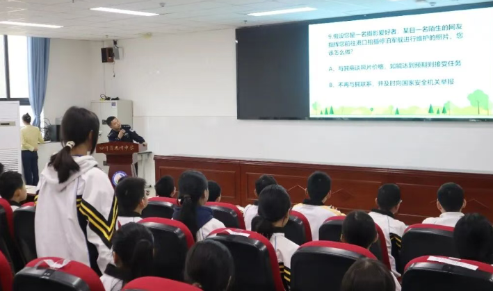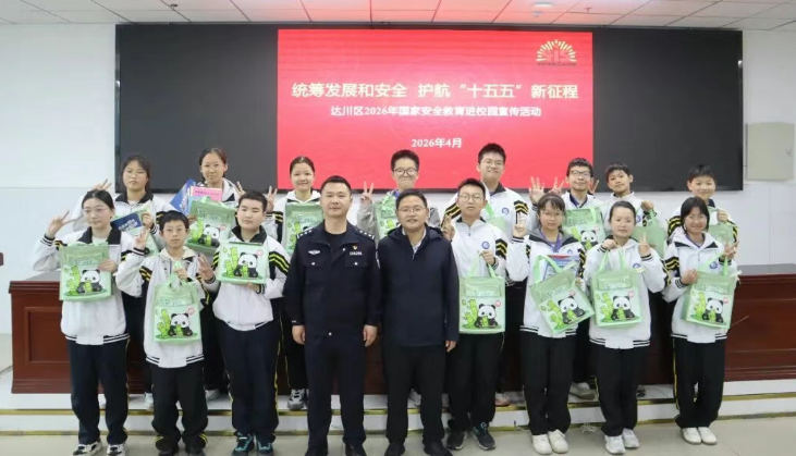 在第十一个全民国家安全教育日即将到来之际,为增强青少年国家安全意识,推动国家安全教育深入人心,4月8日上午,由达州市达川区委办公室、达川区教育局、达川区公安分局、达川区委网信办、达川区国动办、达川三里坪街道等多部门联合主办的“2026年全民国家安全教育进校园宣传活动”在达川中学三里校区多功能报告厅举行,此次活动由副校长周炀主持。 活动在暖场歌曲《少年》的旋律中拉开帷幕,学生们有序入场,各单位工作人员现场发放宣传资料,营造出浓厚的宣传教育氛围。随后,全体人员共同观看了宣传视频《忠诚》(《惊蛰无声》片尾曲),通过生动的影像,进一步加深了同学们对国家安全重要性的理解。 活动中,三里坪派出所副所长邱晨警官为同学们带来了一场内容丰富、深入浅出的国家安全知识宣讲。邱警官结合实际案例,讲解了国家安全的基本内涵、当前面临的风险挑战,以及青少年应如何自觉维护国家安全等内容,现场气氛热烈,同学们认真聆听,受益匪浅。 紧接着,活动进入了互动答题环节。同学们踊跃举手,积极参与,围绕国家安全知识展开答题。答对者还获得了精美的宣传小礼品,现场掌声不断,气氛活跃。通过寓教于乐的方式,进一步巩固了同学们对国家安全知识的理解和掌握。 活动最后,主持人作总结发言。他指出,国家安全如同空气,虽无形却至关重要。无论是“蛟龙”潜海,还是“北斗”指路,国家的每一项成就都离不开安全稳定的环境。希望同学们将国家安全意识内化于心、外化于行,以青春之我守护青春之国,用实际行动书写无愧于时代的青春篇章。 活动结束后,各单位工作人员还为在场学生发放了宣传小礼品——小风扇,深受同学们喜爱。 此次全民国家安全教育进校园宣传活动,不仅增强了同学们的国家安全意识和法治观念,也进一步推动了国家安全教育在校园的常态化、制度化开展,为构建平安校园、和谐达川注入了青春力量。