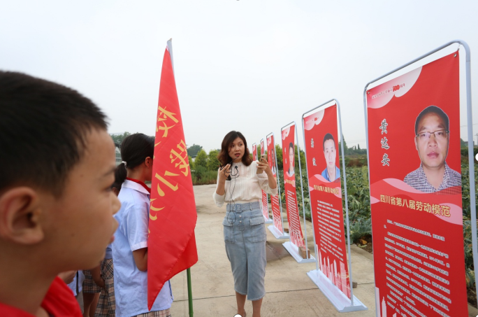 省劳模黄达安,是由做废旧物资回收改行从事现代农业生产的新型职业农民,也是广汉市总工会新授牌的4个“四川省劳模和工匠人才工作室”之一的领衔人。他牵头成立的专合社,流转土地500多亩,带领周边农户共同勤劳致富,自身创业、帮助村民兴业的故事十分丰富。广汉市总工会在紧扣“五讲五进”推进党史学习教育中,利用黄达安工作室从事蔬菜种植,便于组织学生开展劳动实践的有利条件,让劳模联系自己的成长经历和企业发展历程,向青少年学生讲好“我的劳模故事”,讲初心、讲劳动精神,开展“四史”宣讲,讲广汉改革开放的历史性变化,组织学生到“校外劳动教育实践基地”进行劳动体验活动。活动中,广汉市总工会副主席杨红向师生细致介绍2020年以来广汉市新评出的3位省劳模和13名德阳市劳模的先进事迹,并组织学生有序观看16位劳模的事迹展板,引导学生向劳模学习,传承弘扬劳模精神、劳动精神,让奋斗进取基因融入青少年成长的血脉,听党话、感党恩、跟党走,学好本领,建设祖国、建设家乡。