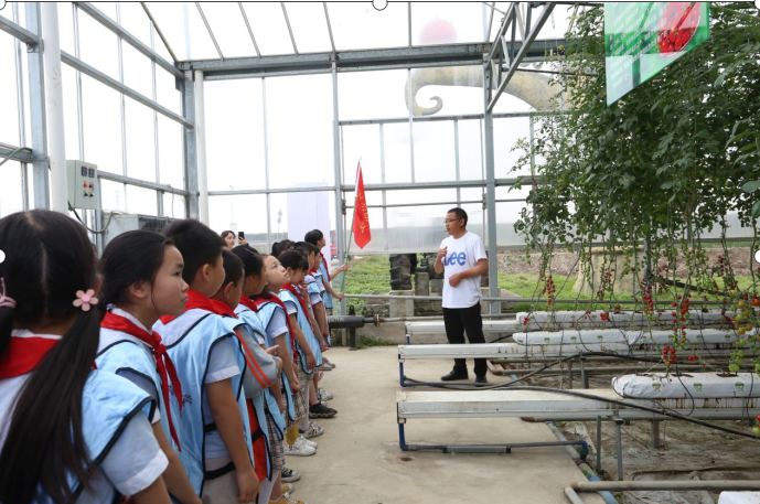 活动现场,四川省第八届劳动模范、广汉市垦丰果蔬种植专业合作社理事长黄达安代表专合社,与广汉市金轮学校签订“校外劳动教育实践基地”校社合作协议。随后,金轮学校师生跟随黄达安劳模的步伐,一边参观专合社专用蔬菜种植、育苗大棚内的肥水一体化系统,实地观看利用物联网技术实现园区智慧管理的场景,一边一起聆听黄达安劳模的创业故事、专合社的发展故事,感受、体验社会主义农业的发展变化,广汉农业现代化建设的成就,幸福感、自豪感油然而生。