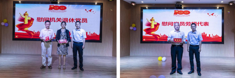 ▲现场慰问党员劳模和机关退休党员