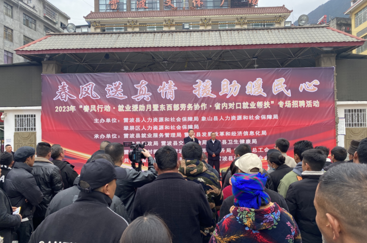 为做好凉山州雷波县脱贫人口转移就业工作,进一步推进省内对口就业帮扶。2月16日,宜宾市翠屏区人力资源和社会保障局再次携手雷波县人力资源和社会保障局在雷波县文体广场成功举办主题为“春风送真情 援助暖民心”的2023年“春风行动·就业援助月暨东西部劳务协作·省内对口就业帮扶”专场招聘会。