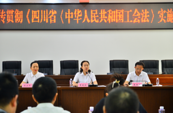 8月30日,宣汉县总工会联合县人社局召开《四川省〈中华人民共和国工会法〉实施办法》(以下简称《实施办法》)学习座谈会,县人社局党组书记、局长曾伶俐主持会议,县委常委、统战部部长、县总工会主席李均林出席会议并讲话。各乡镇(街道)工会、县级各部门(单位)工会、产(行)业工会负责人参加座谈会。