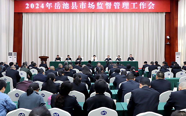 4月3日,岳池县召开2024年市场监管工作会议,盘点市场监管2023年工作,研判市场监管工作新形势新任务新要求,安排2024年工作任务。岳池县委常委、统战部部长谭锦华主持会议。