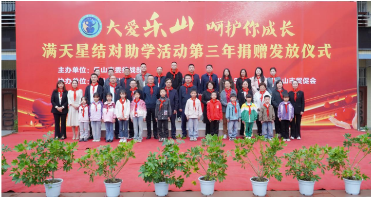 10月24日,“大爱乐山 呵护你成长∙满天星结对助学”活动第三年捐赠发放仪式在沐川县永福学校举行。乐山市进出口商会会长胡英带领商会企业家参加捐赠发放仪式。