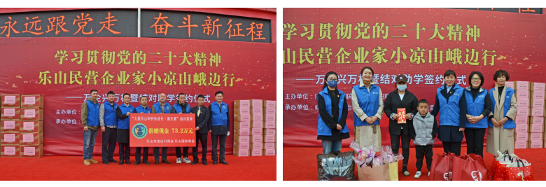 在全市上下深入学习贯彻党的二十大精神之际,11月18日,乐山市进出口商会二十多位企业家在峨边彝族自治县太阳坪小学举行了“学习贯彻党的二十大精神 乐山民营企业家小凉山行——万企兴万村项目投资暨结对助学签约仪式”活动,这既是贯彻落实党的二十大精神、发挥优势助力乡村振兴、为困境儿童搭建实现人生出彩广阔舞台的具体举措,也是乐山争创全省新时代“两个健康”示范市的生动实践。