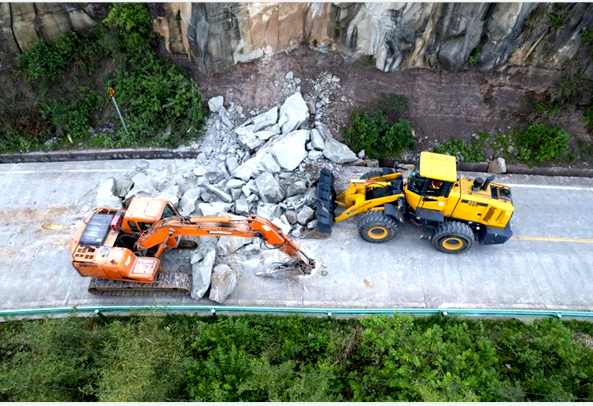 这是由营山县应急管理局主办,县公路管理局承办的一场道路保畅应急抢险演练活动,本次演练设定为因暴雨导致山体滑坡,道路中断,过往行人和车辆无法通行的情况。