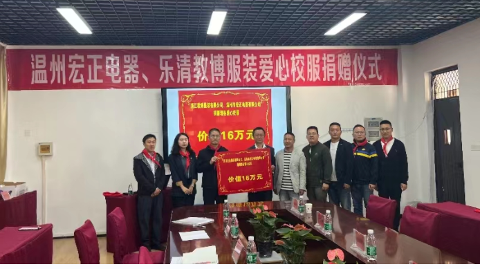 仪式上,浙江温州宏正电器、浙江乐清教博服装两家爱心企业向米亚罗小学、上孟小学、下孟小学、通化小学的学生捐赠了总价值16万元的校服。