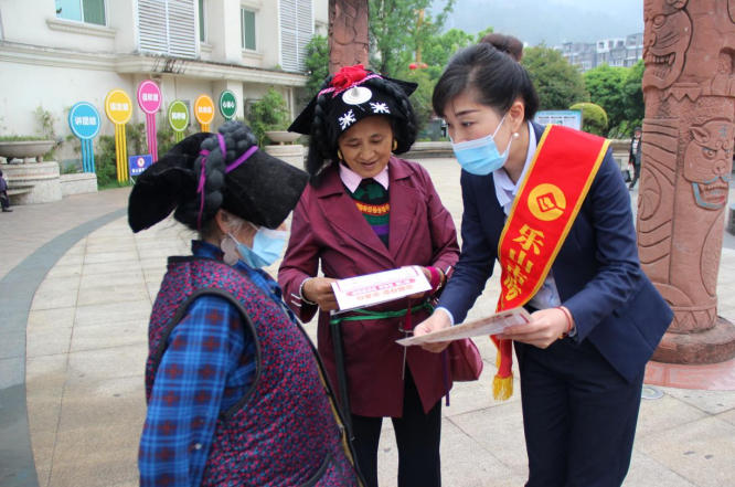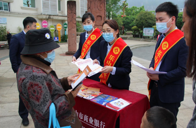 第7个全民国家安全教育日来临前夕,2022年4月14日,乐山市商业银行马边支行的职工在民建镇转转酒广场开展“4.15”全民国家安全教育日普法宣传活动。以实际行动迎接党的二十大胜利召开。