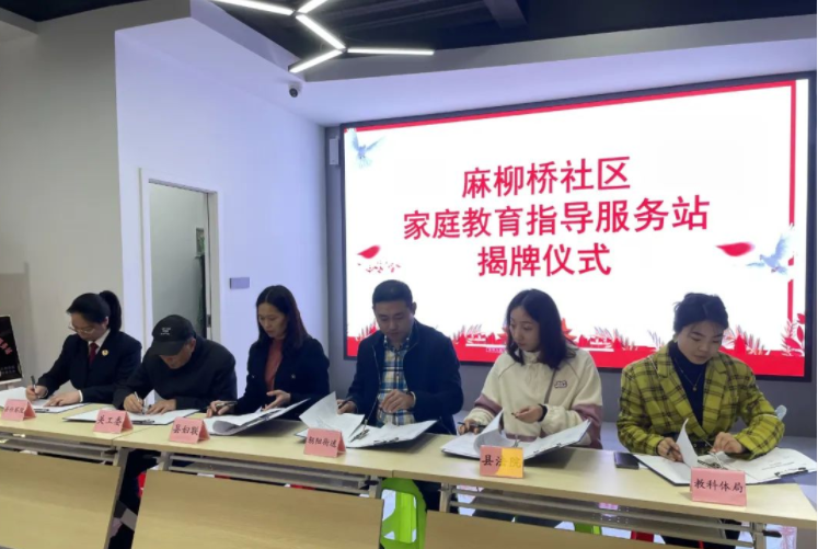 活动现场,各共建单位共同为麻柳桥社区家庭教育指导服务站揭牌,并集中签署《家庭教育指导服务站合作协议》,就家庭教育指导服务站服务范围、服务内容、队伍建设、共建单位职责等方面进行了明确,同时,凝聚各单位家庭教育、心理咨询、法律等方面专业人才,组建麻柳桥社区首批家庭教育指导员队伍,为社区家庭教育工作开展打下坚实基础。