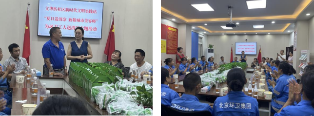 为了表达对一线环卫工人辛勤付出的敬意与关怀,通川区东城街道文华街社区工会积极行动,8月2日上午,在文明实践大讲堂举办了一场以“夏日送清凉 致敬城市美容师”为主题的关爱活动,为炎炎夏日下仍坚守岗位的环卫工人送去清凉与关爱。